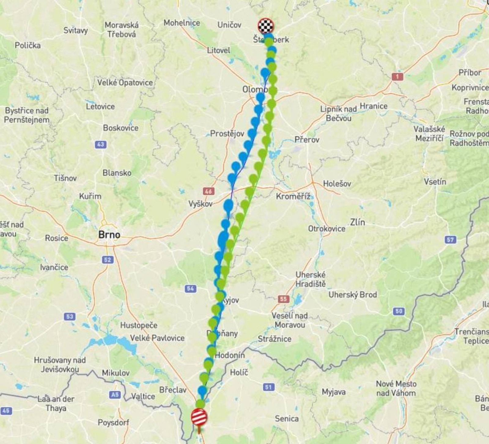 První závod a první vítěz. Otíku – gratulujeme. A máme pro vás novinku. Dva naši kamarádi měli na noze GPS kroužek a vy nyní můžete vidět, kudy jsme letěli. Na fotografii je znát, že jsme se nikde netoulali a letěli jsme přímo domů. Jsme dobří. Pro Talent Quatro: Kingboy a Beladona |