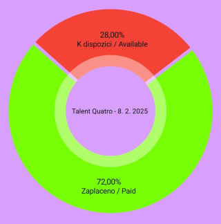 Haló, lidi! Už jste nám koupili vstupenku do Talentu Quatro? Že ne? No to snad nemyslíte vážně? Vždyť za chvíli budou všechna místa obsazená a my chceme závodit!!! Podívejte se na graf, jak se to tam rychle plní. Jen zaplacená přihláška nám zaručuje místo v Talentu. My už se tam strašně moc těšíme. Nezklamte nás, možná právě v roce 2025 Vám vylétáme hlavní cenu. Vaši budoucí Talenti 2025 |